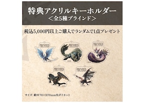 【モンスターハンター・ザ・フィールド】の商品をお買い上げの方に、オリジナルアクリルキーホルダーを全5種の中からランダムでプレゼントいたします!(商品写真②)
